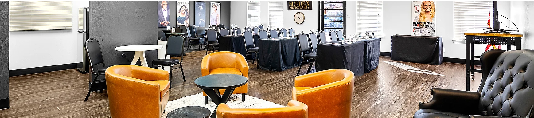 That need was business meeting space, and owners Lynn and Curt Seeden opened Seeden Club on Jan. 1. The Seedens expanded their business to two office suites and redecorated their 1,300-square-foot studio to dually work as a meeting space. The Seedens spread out their photography operations to the adjoining suite. The original Seeden Photography began 25 years ago, but the Seedens opened their current studio in October 2021. Lynn Seeden has owned photography studios for more than 30 years, but this is her first rental meeting space.
